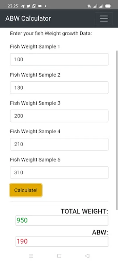 To facilitate the process of measuring ABW, we created a simple calculator application to measure it. With this application will make it easier for cultivators to retrieve ABW data in each cultivation cycle that is carried out I hope this application can be helpful and useful. Thank you.