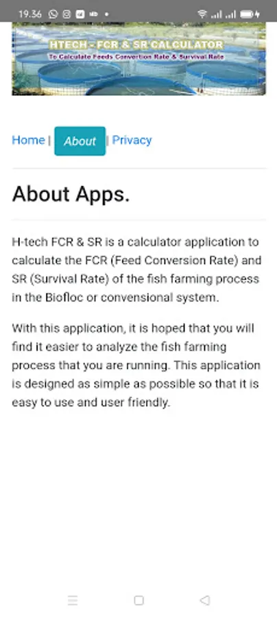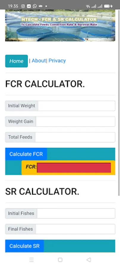 H-tech FCR & SR is a calculator application to calculate the FCR (Feed Conversion Rate) and SR (Survival Rate) of the fish farming process in the Biofloc or convensional system.