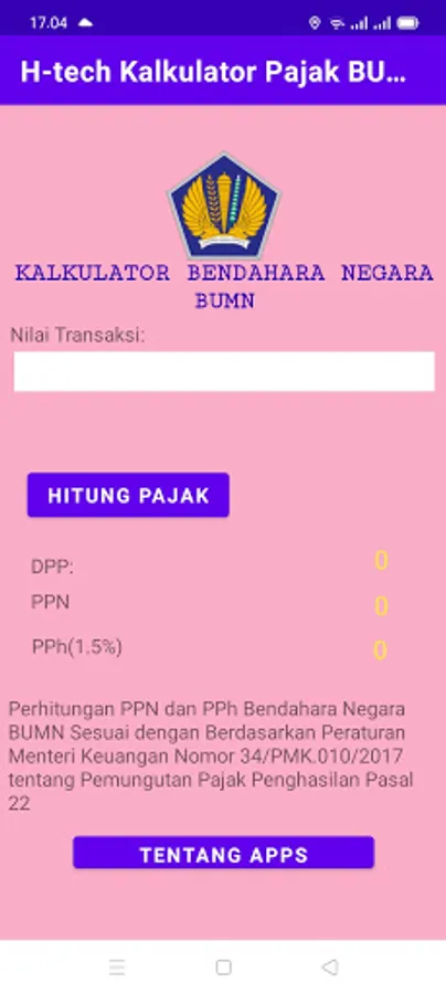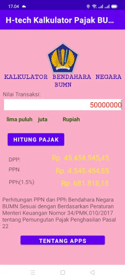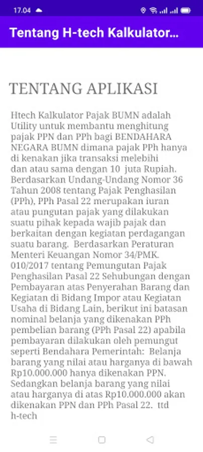 Htech SOE Tax Calculator is a utility to help calculate VAT and PPh taxes for SOE STATE BENDAHARA where the PPh tax is only imposed if the transaction exceeds and or is equal to 10 million Rupiah.