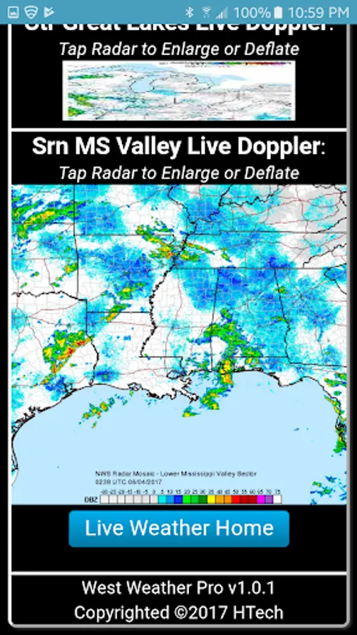• Live Doppler Radar coverage for the Southwest Sector