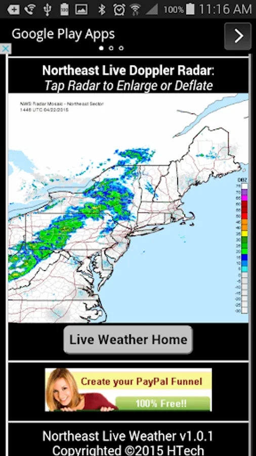 • Live Doppler Radar coverage for the entire Northeast Sector