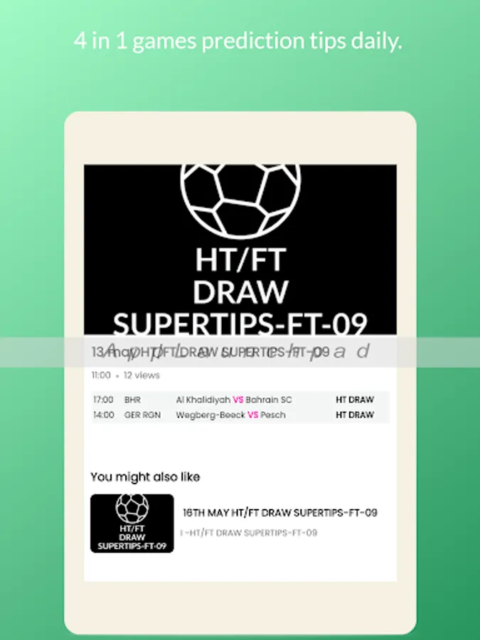 HT/FT DRAW SUPERTIPS-FT-09 as the name implies we provide you with FT and HT draw prediction tips from all soccer games.