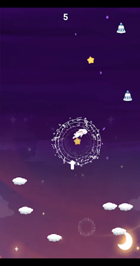 Click to let the rabbit jump up, every step on a bell, the rabbit will continue to jump up a distance, move the mouse control rabbit around to move, let it step on the next bell, then continue, when the rabbit fell down the game is over, jump to the birds, the score doubled oh!