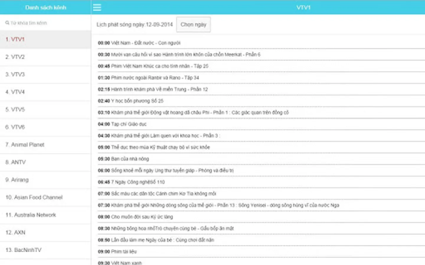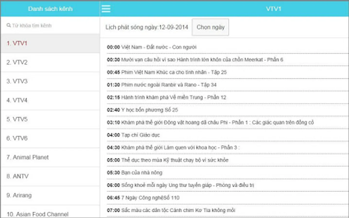 - Application to watch TV schedules, broadcast schedules, online TV schedules of more than 110 popular TV channels such as VTV, HTV, VTC, k +, ...