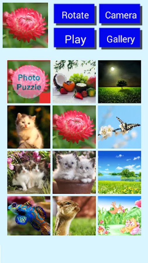 Photo Puzzle provides about 30 beautiful images. You also use images in your device to play.