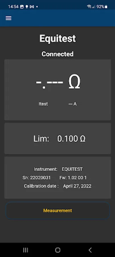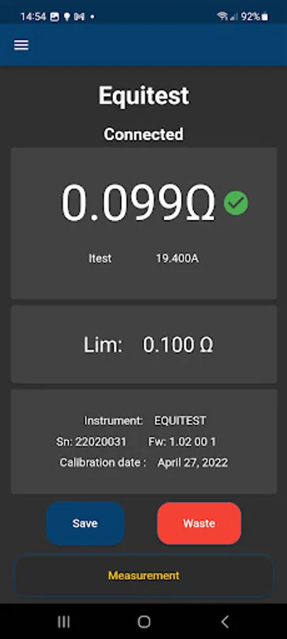 The application allows direct connection with Equitest and immediately becomes its soul; in a simple way it will be able to perform measurements and create reports with just one "Tap"