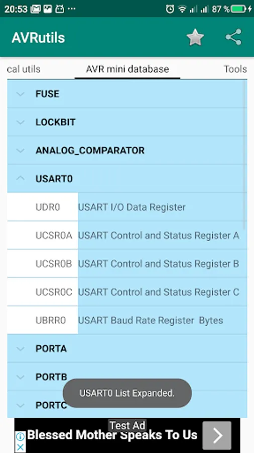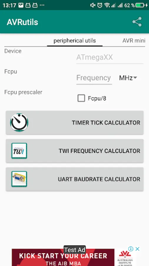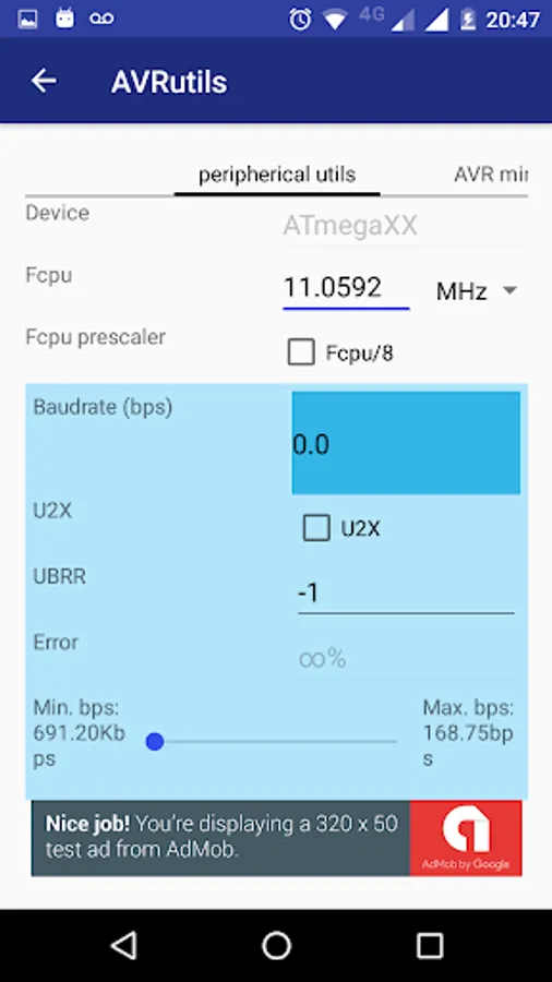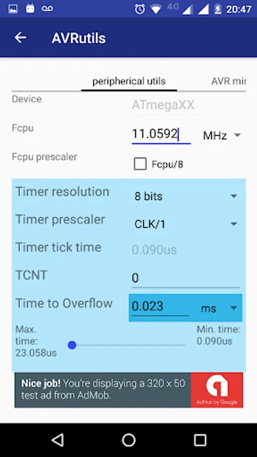 Obtain the register values to configure the following periphericals in the ATMEL's AVRs: