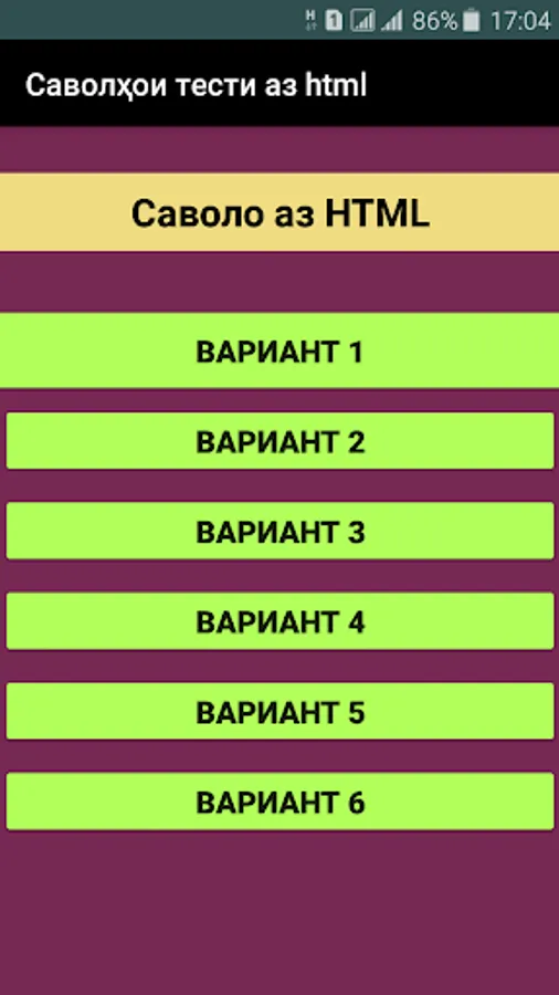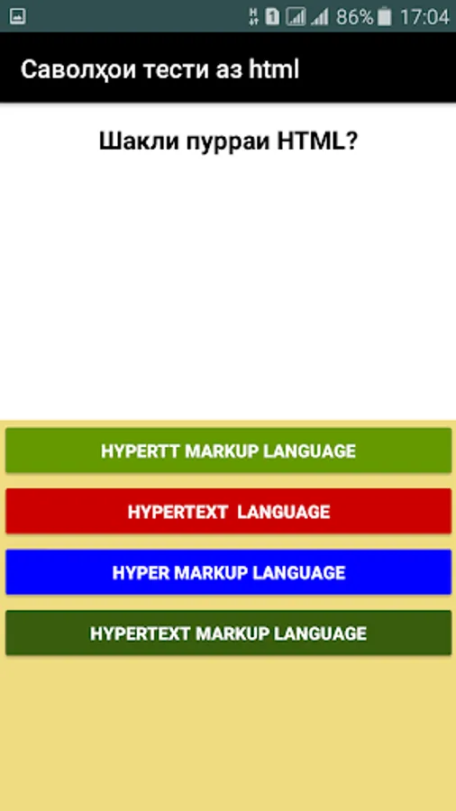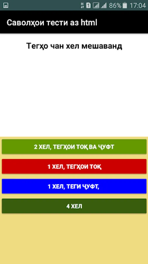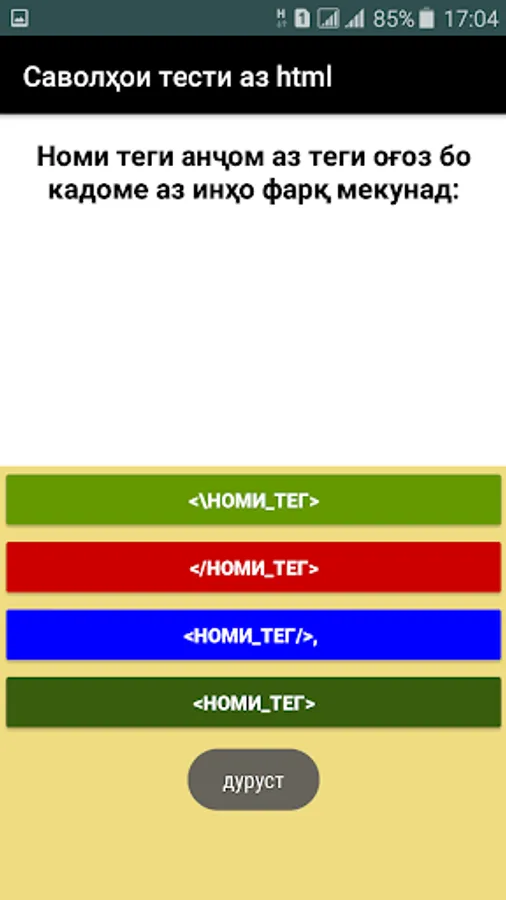 Savolҳo bo option dar borai tegҳoi odditarin va assosii zaboni html ovarda shudaast. Shumo honda az varianti durustashro intihob mekuned.