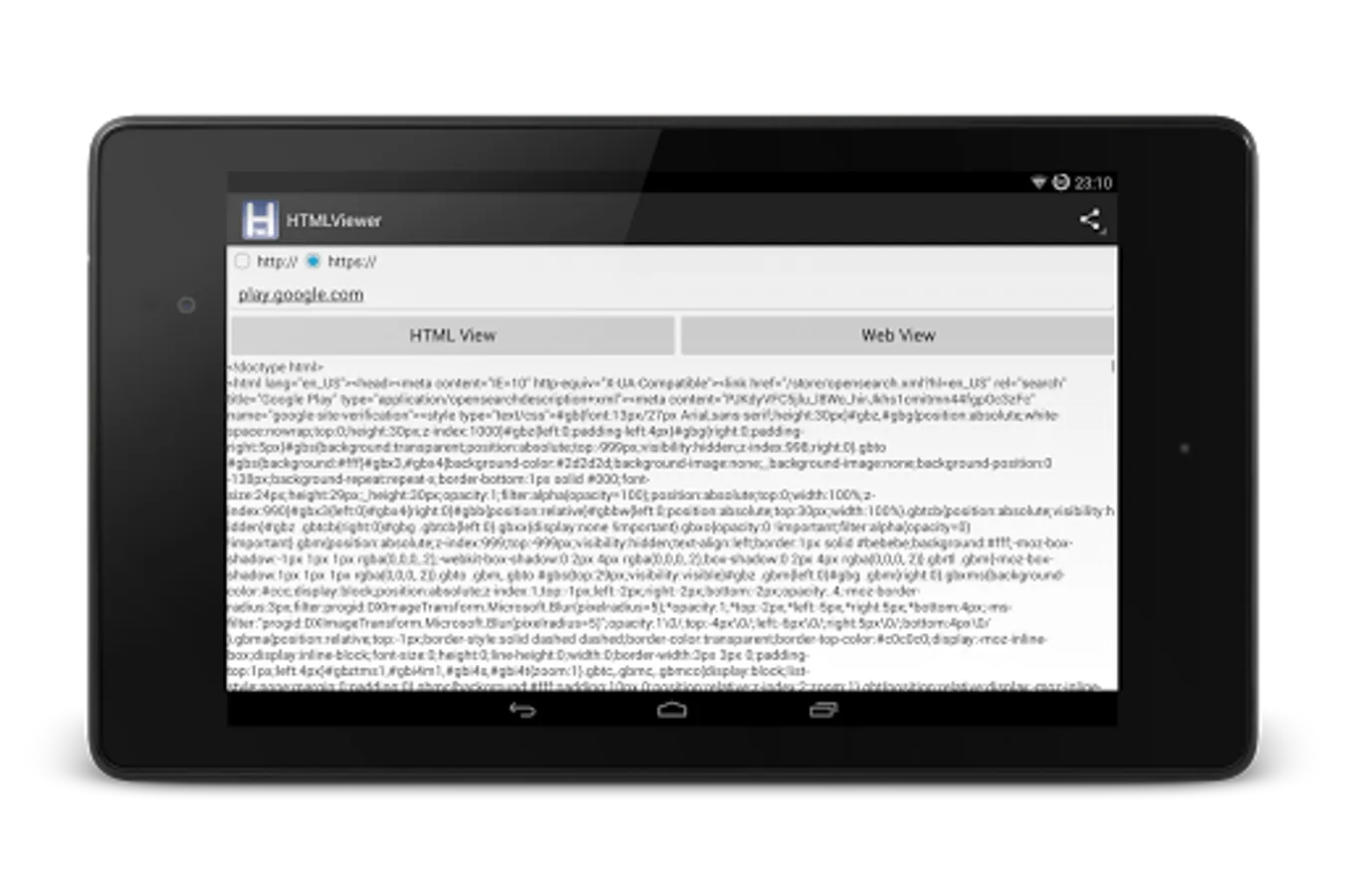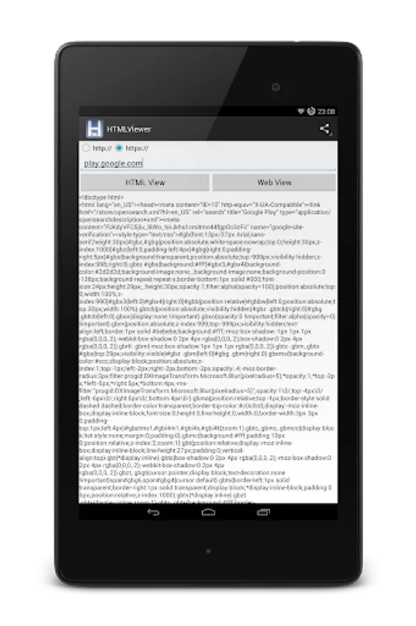 View the source code of any website or webpage using the free HTML Viewer app