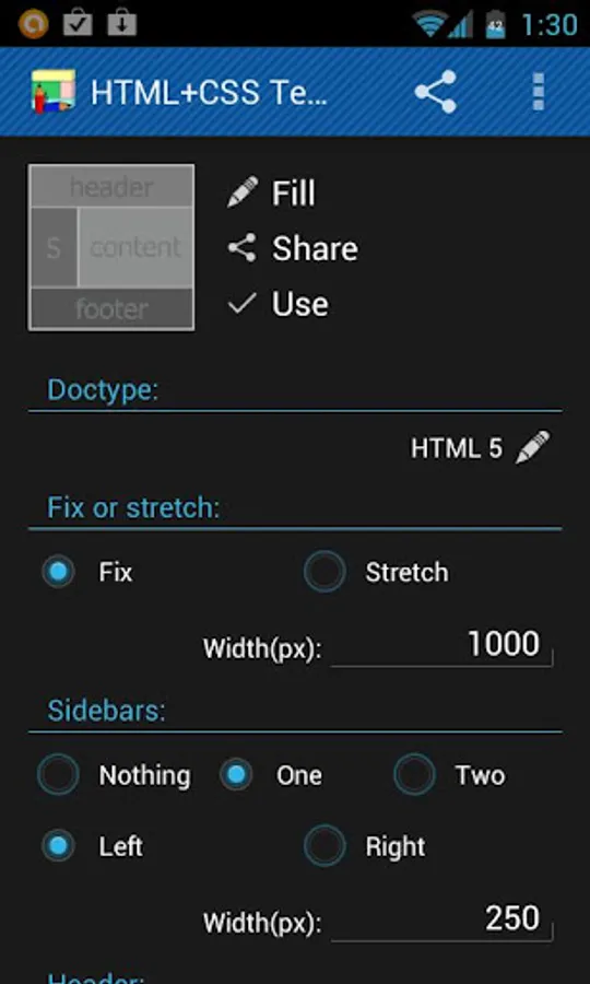 Now, if you are developing a site on your android-device, or do not have Internet access, you can always make a html template quickly, simply and conveniently by using this application.