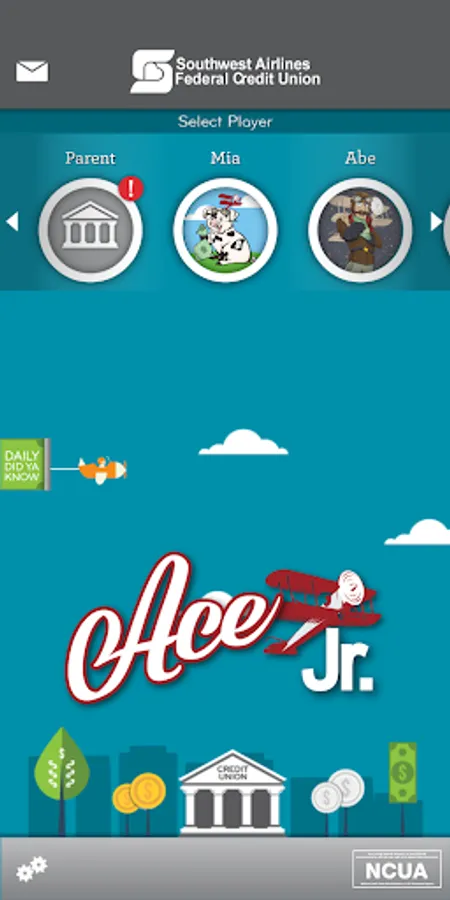 *Ace Jr. allows users to view their accounts at SouthWest Airlines Federal Credit Union only, It acts as a virtual piggy bank. No real money changes hands with the app.