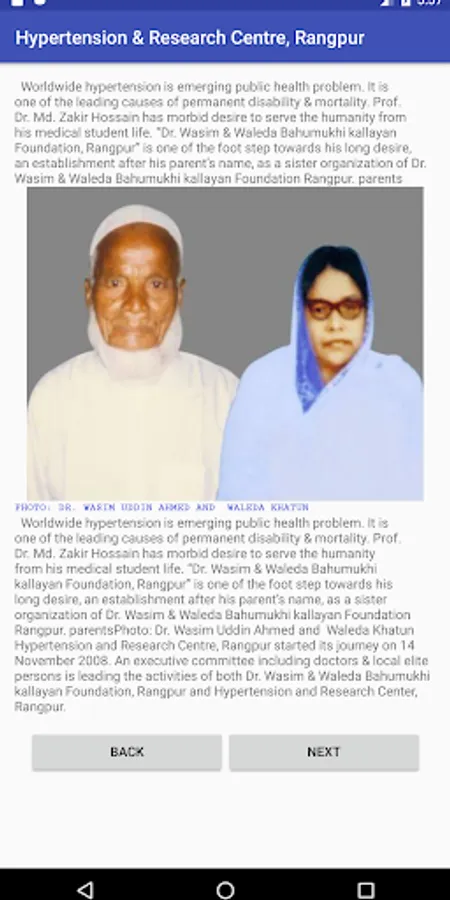 Hypertension and Research Centre, Rangpur is a sister concern of Dr. Wasim-waleda Bahumukhi Kallayan Foundation was established on 14 November 2008 with the aim of improvement of public consciousness on the risk factors, morbidity and mortality of Hypertension as a part of a great and services of humanity. Hypertension kills nearly 8 million people every year, worldwide, and nearly 1.5 million people each year in the South-East Asia (SEA) Region. Approximately one-third of the adult population in the SEA Region has high blood pressure. The prevalence of hypertension is 20-25% among the adult population in Bangladesh. It is one of the 10 leading reported causes of death and about 4.0% of deaths are due to hypertension and/or complication of hypertension in Bangladesh.