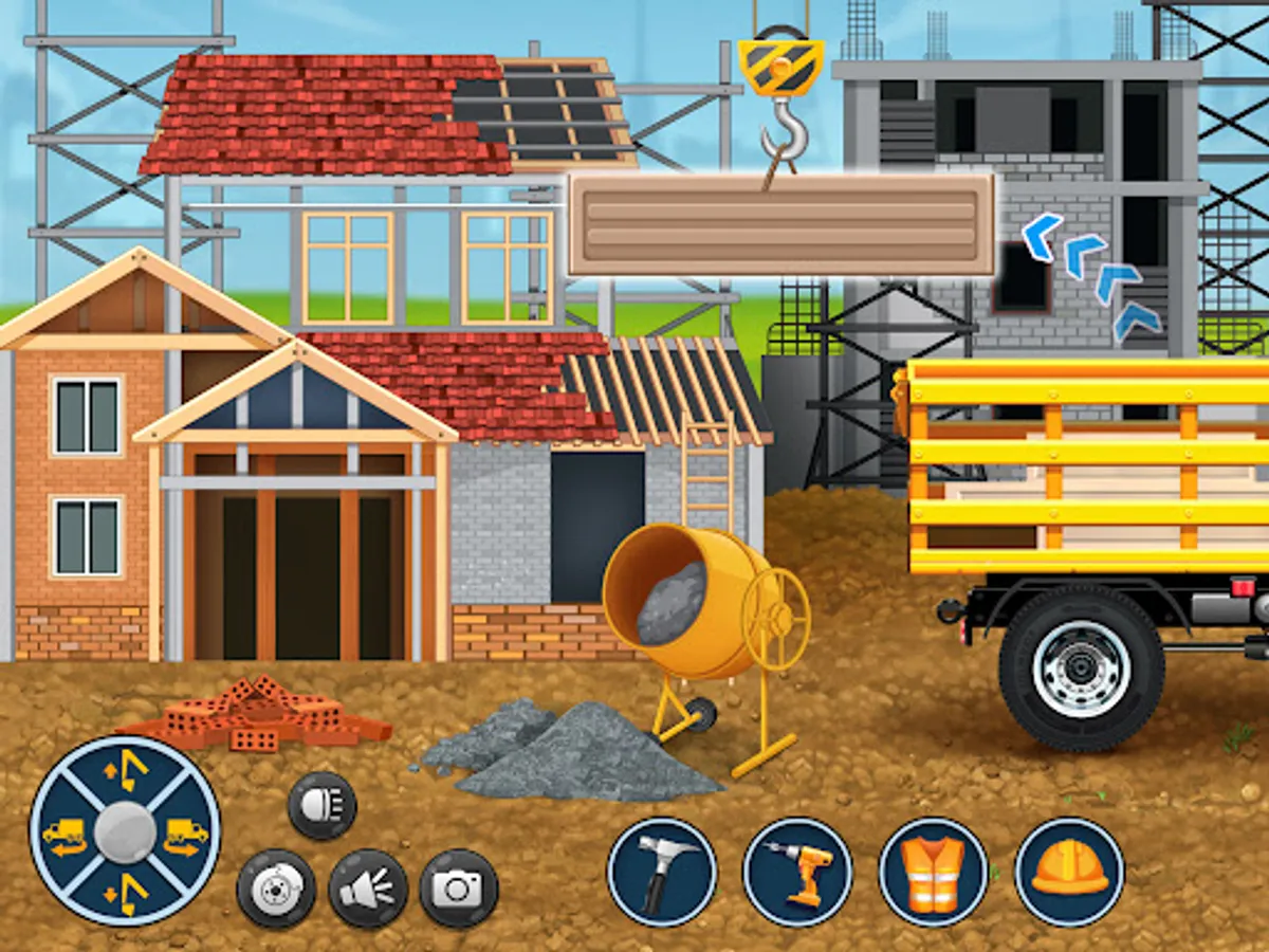 Play City Construction driving to Build a House Cut timbers and use wood for your house building games and metropolis simcity. Start Build a City construction ramp jump, chop imported timbers with a chainsaw in the house building games. Construction Game Build a city with Combine all the wood pieces in City Construction Vehicle Games and reshape them with a circular saw and plane cutting tools. Use hammers and cranes to demolish the towers and build new towers with your city construction Games Simulator skills. House construction Simulator digger games offline and learn about free construction truck vehicles.
