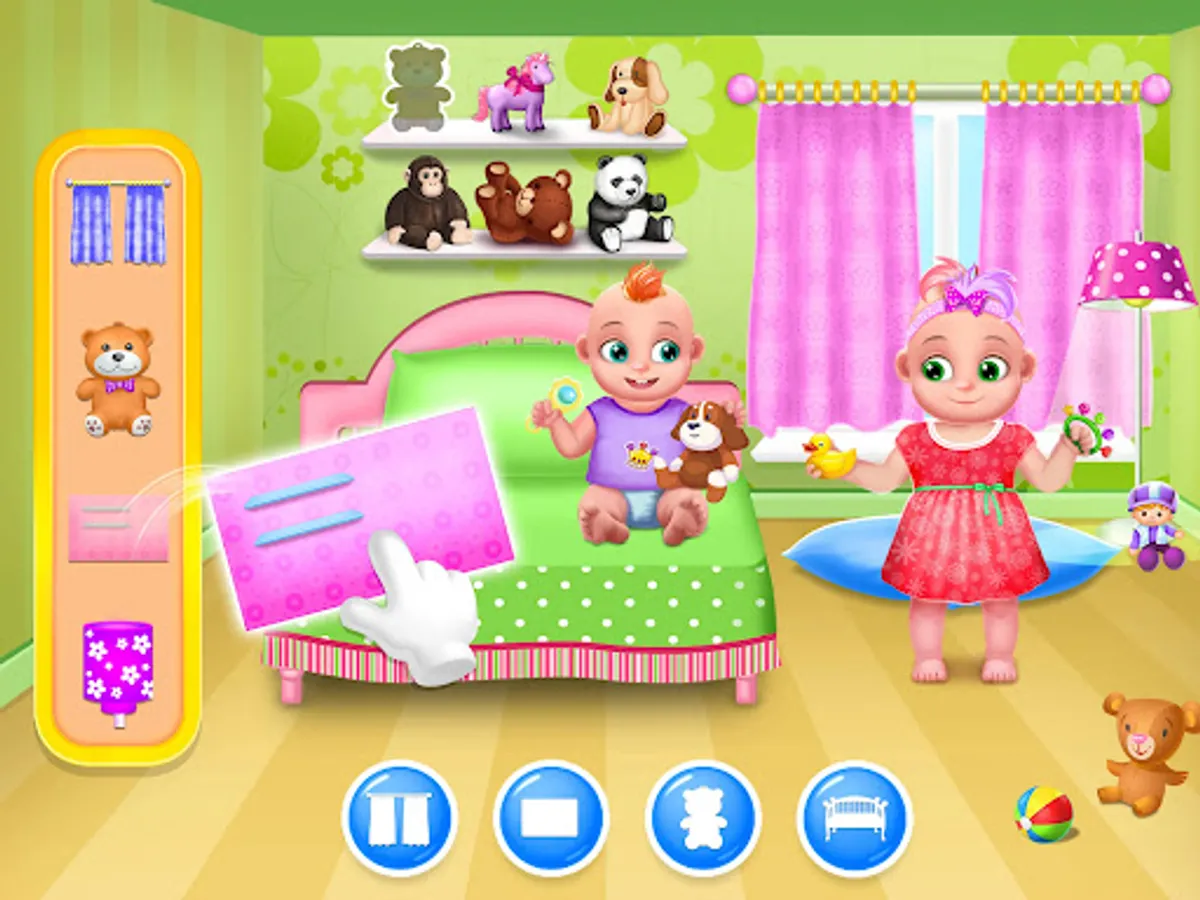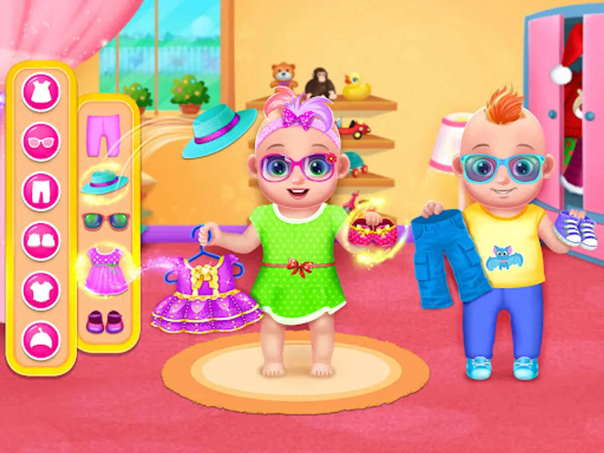 Finally, both fall asleep in mom and baby games and everyone feels better. Play many mini-games, coloring pages games, baby room decoration fun games with these adorable terrible two and have unlimited fun of newborn twin baby care games. There is so much to play with, so get ready for double the fun and double the trouble of nursery games. Help the pregnant mommy and give her relief. You never play such a full of entertaining cute twins baby care games ever.