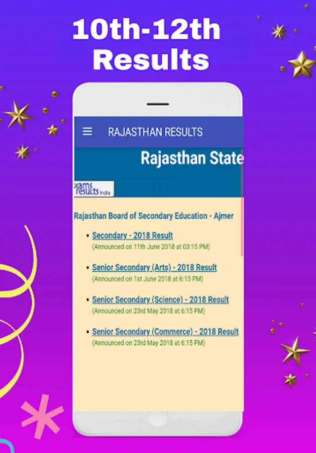 10TH And 12TH Result Art Science commerce इस apps में आपको RBSE Exam के Results मिलेंगे । आशा करता हु आप सभी का Result अच्छा हो ।