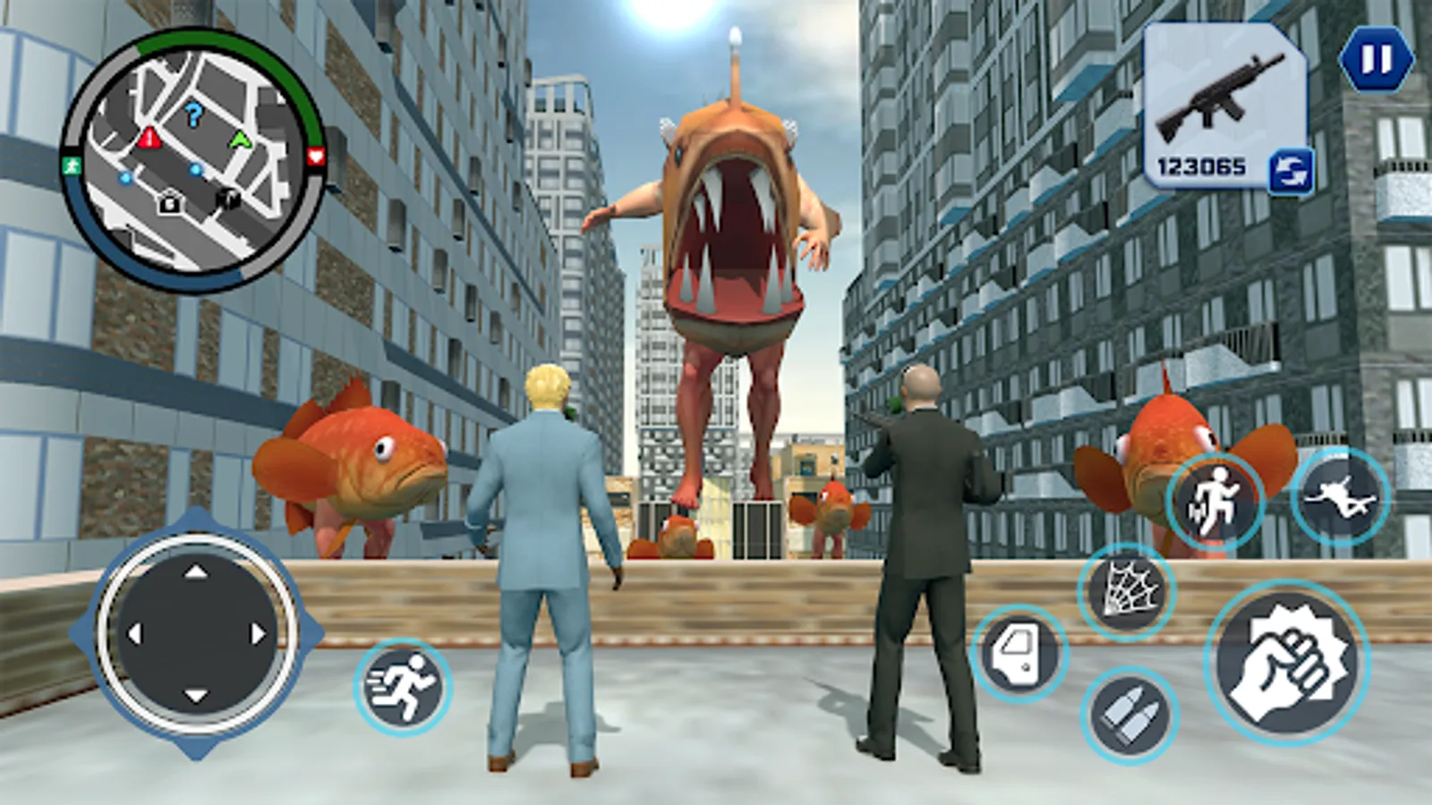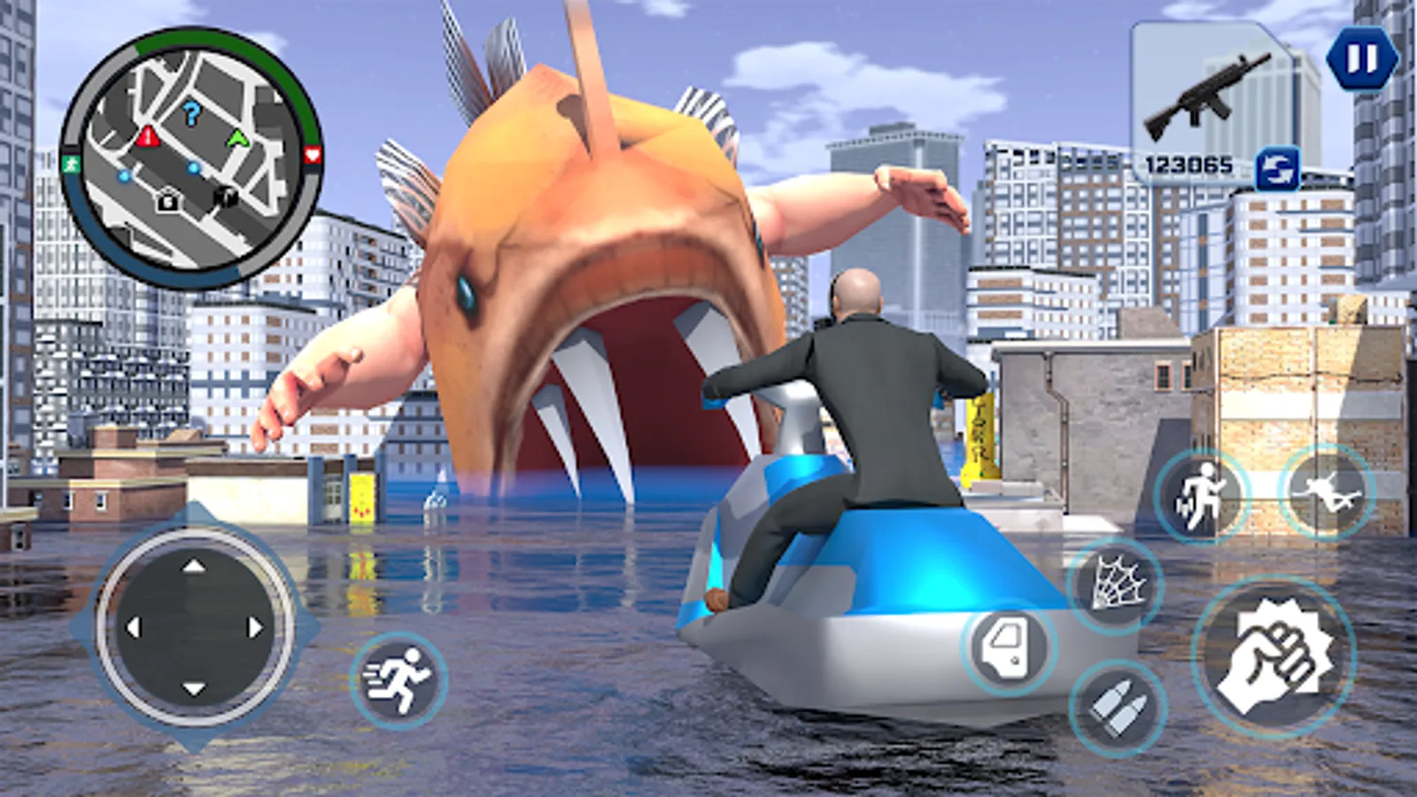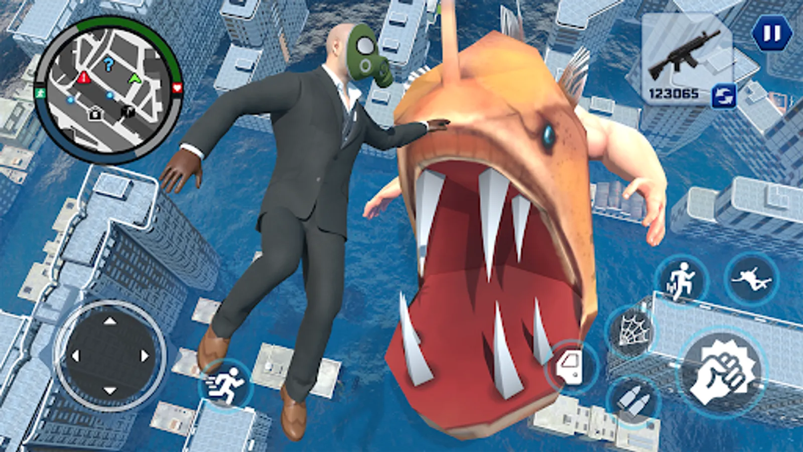 Welcome to Crime Gangsta Fight The Fish , the greatest huge gangster simulator action hero game. The Fish Army is attacking Crime City, and only the hero gangster can fight back. Come play and enjoy the outstanding fluid animations as superheroes swing effortlessly across gangster cities like never before.