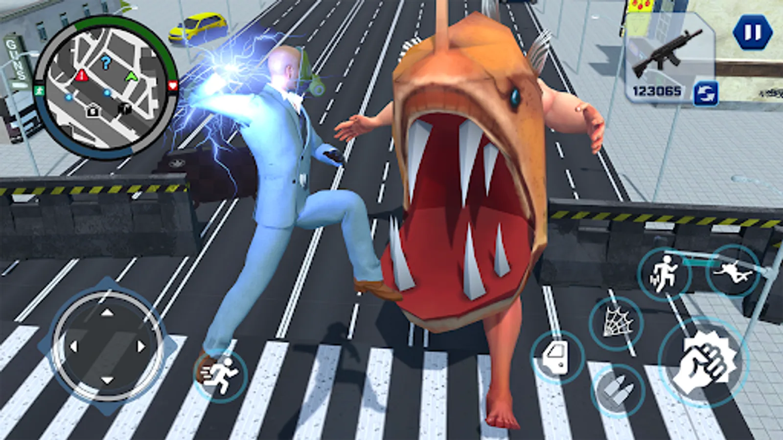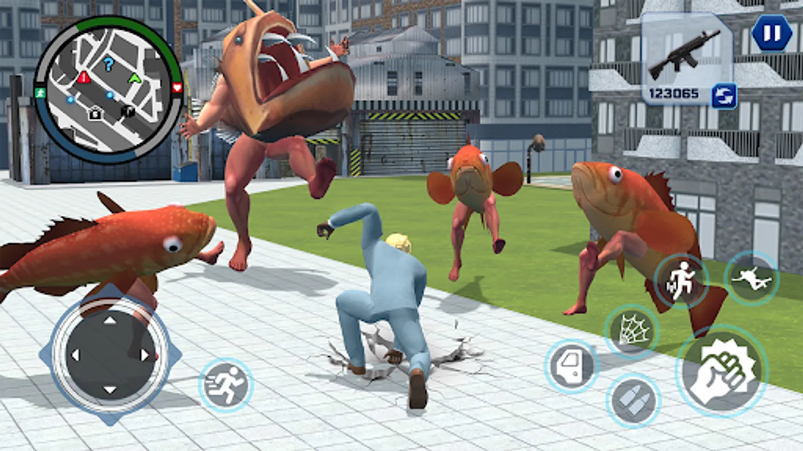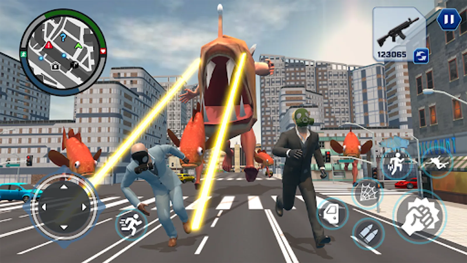 Welcome to Crime Gangsta Fight The Fish , the greatest huge gangster simulator action hero game. The Fish Army is attacking Crime City, and only the hero gangster can fight back. Come play and enjoy the outstanding fluid animations as superheroes swing effortlessly across gangster cities like never before.
