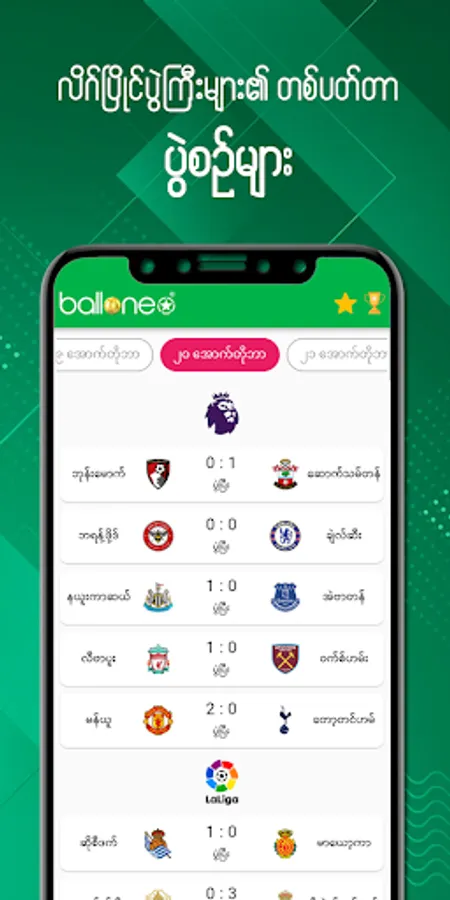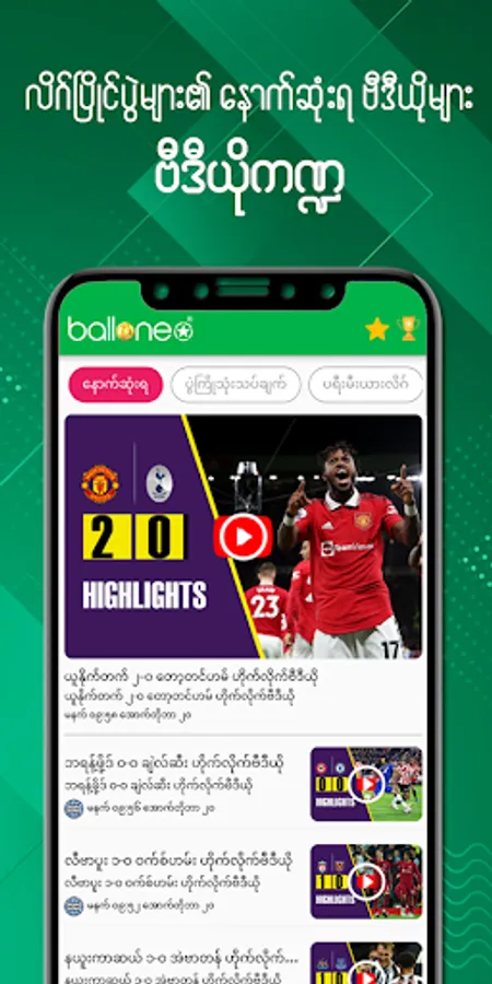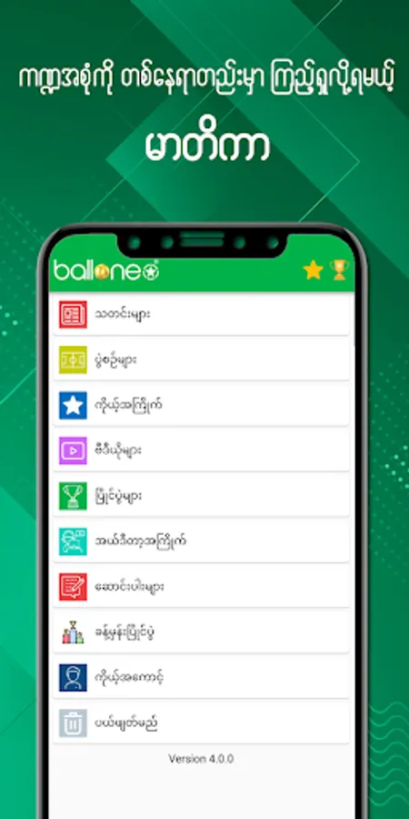 The Ballone Star @ Football Star is the mobile football app in Myanmar. Ballone Star is the best Football App to stay up to date with all the latest football news, live scores, results, transfers and more from your favourite team and all other clubs around the world.