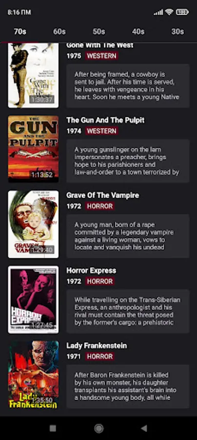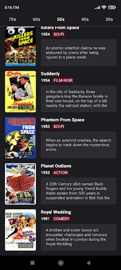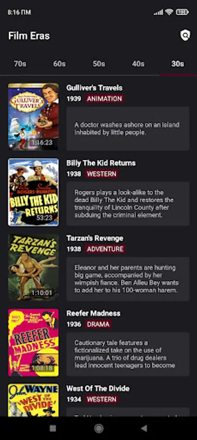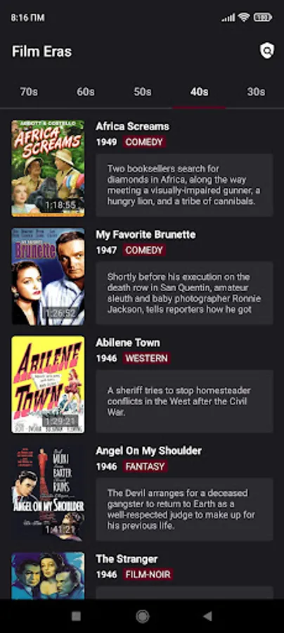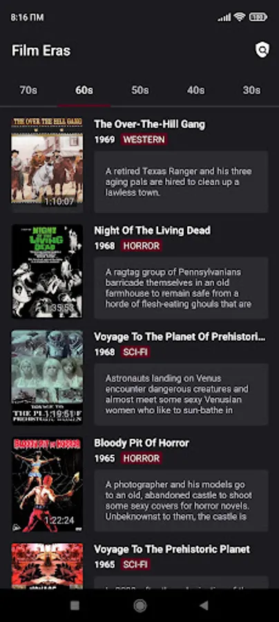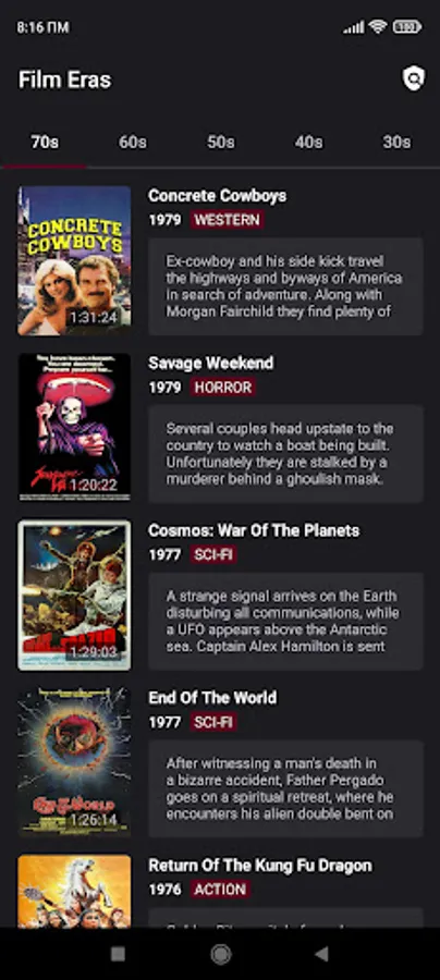 Popular classic movies are waiting for you, in the app you will find a list of comedy, action, horror, adventure, western, sci-fi films etc.