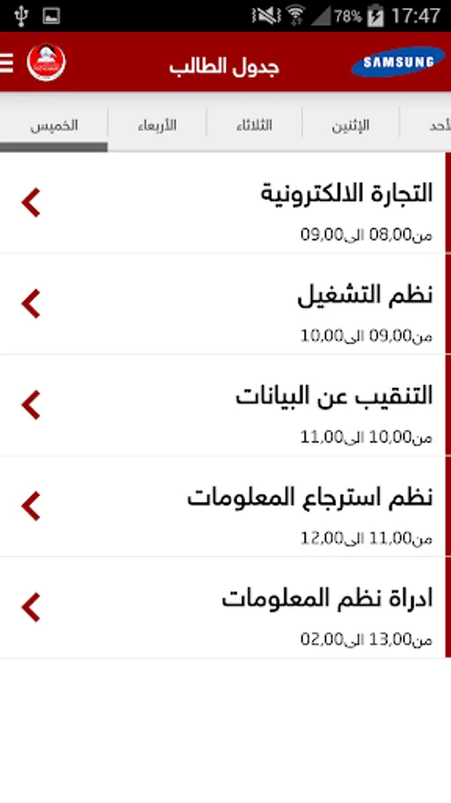 - معلومات الطالب الأكاديمية المنشورة من موقع الجامعة الرسمي ( جدول دراسي و خطة دراسية للتخصص و علامات المواد)