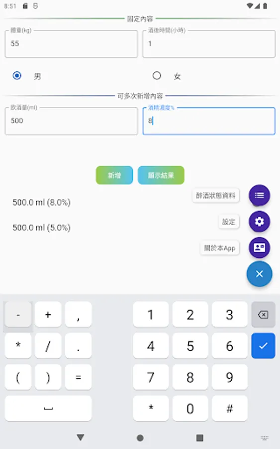 Alcohol Units and Estimated Blood Alcohol Concentration (EBAC) Easy Calculation APP.