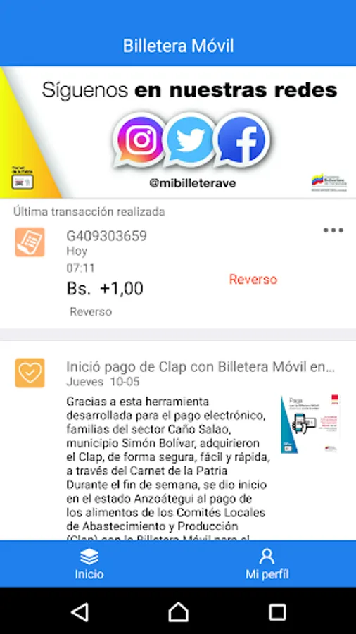 Affiliating and make an electronic transfer from your Account to Carnet de la Patria from the bank's website. Currently only available on the website of Banco de Venezuela