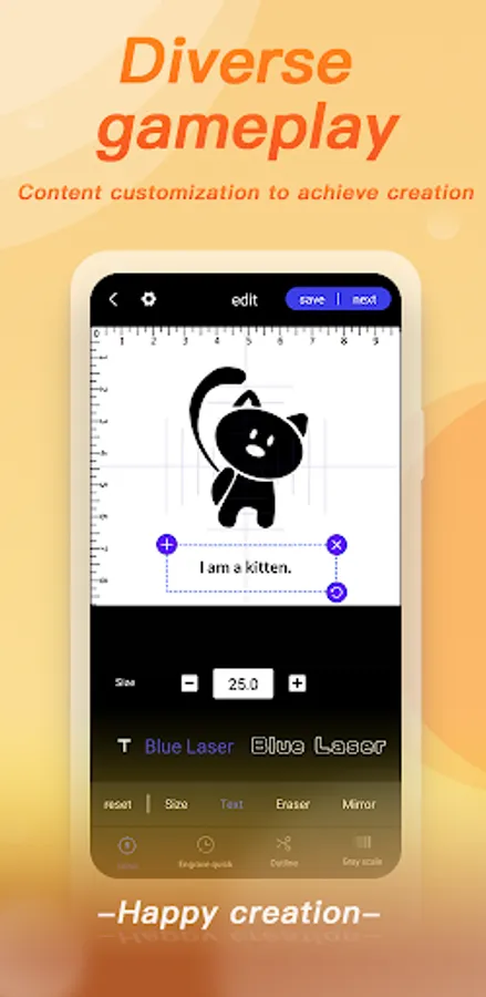 This APP is created by an experienced team, from obtaining materials to editing materials to carving settings, have a good experience. There are 4 ways to get the material. There are three kinds of filters for editing materials, gesture editing, eraser, precise editing and so on. There are 5 modes of engraving, and considerate configuration settings.