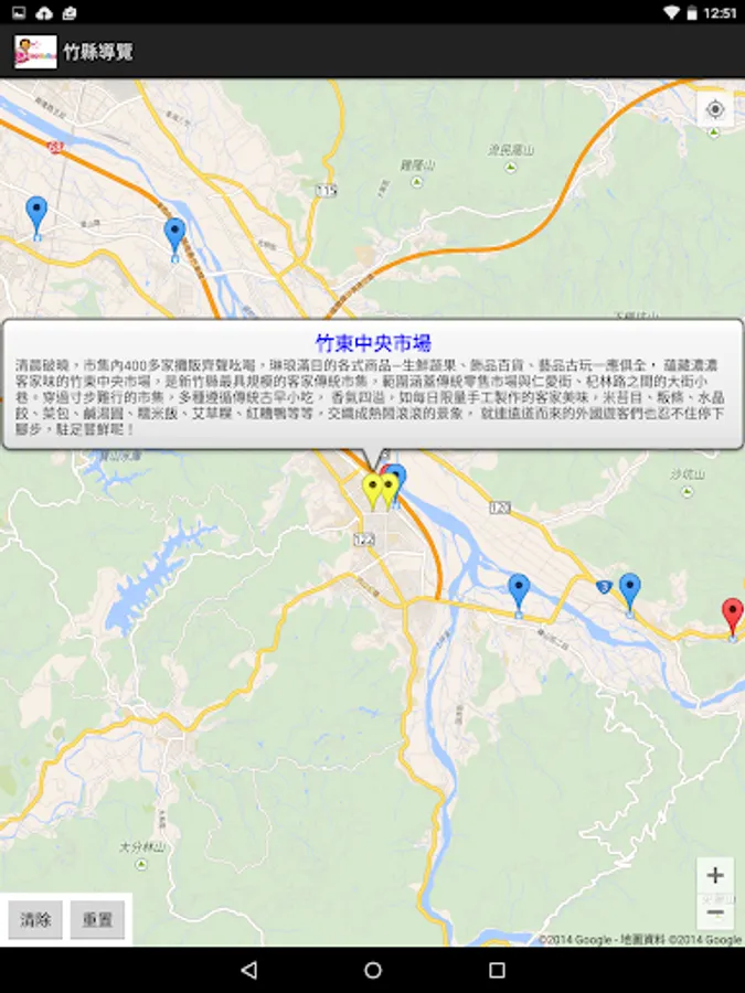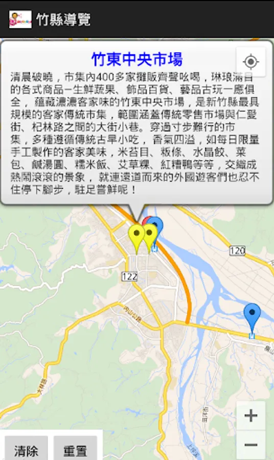 *Google地圖(客製化):引用Google地圖,預設台鐵內灣線、主要景點等標記,方便您查詢相關的地理位置