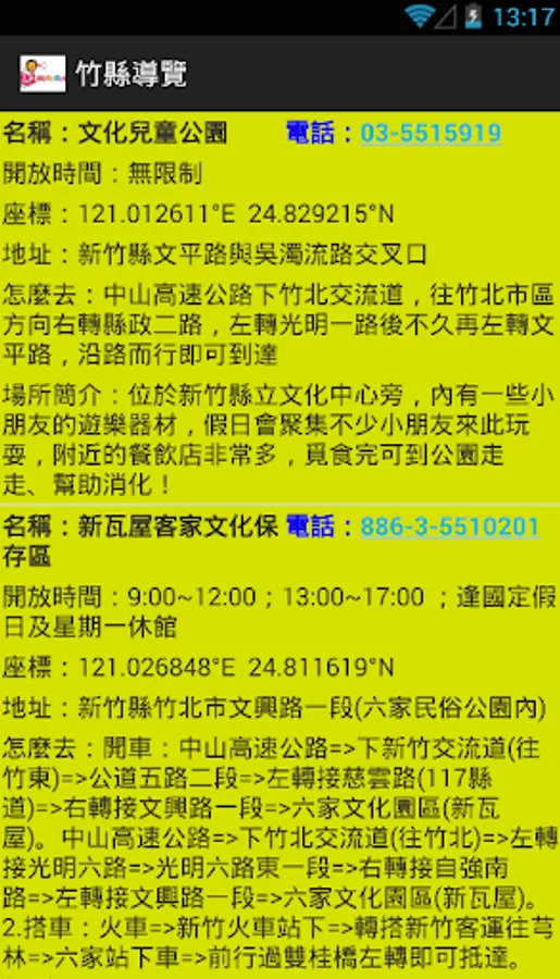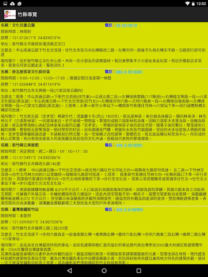*旅遊類開放資料:連結新竹縣政府開放資料平台,選用適合的旅遊類資料,將資料結構優化後呈現您額外的旅遊資訊。