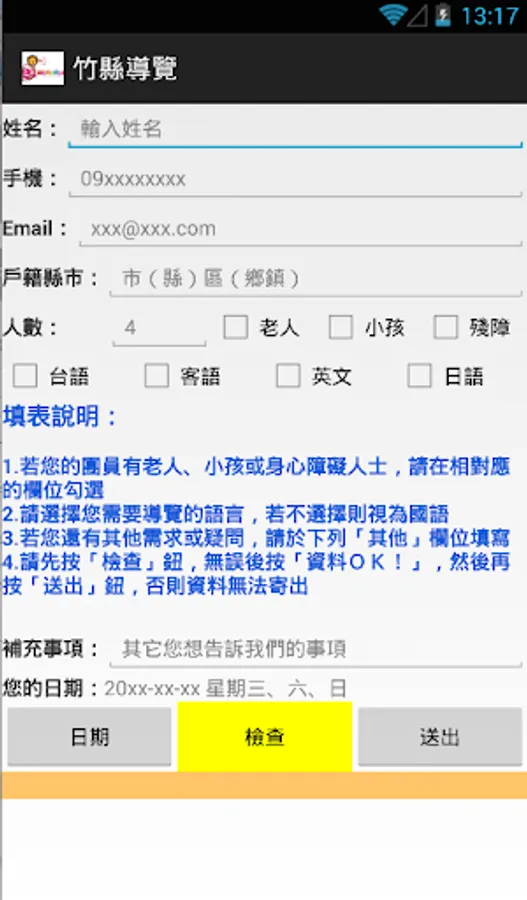 *申請導覽:填寫客製化的表單,並連結您預設的Email軟體發送給本協會,並預約免費的導覽行程