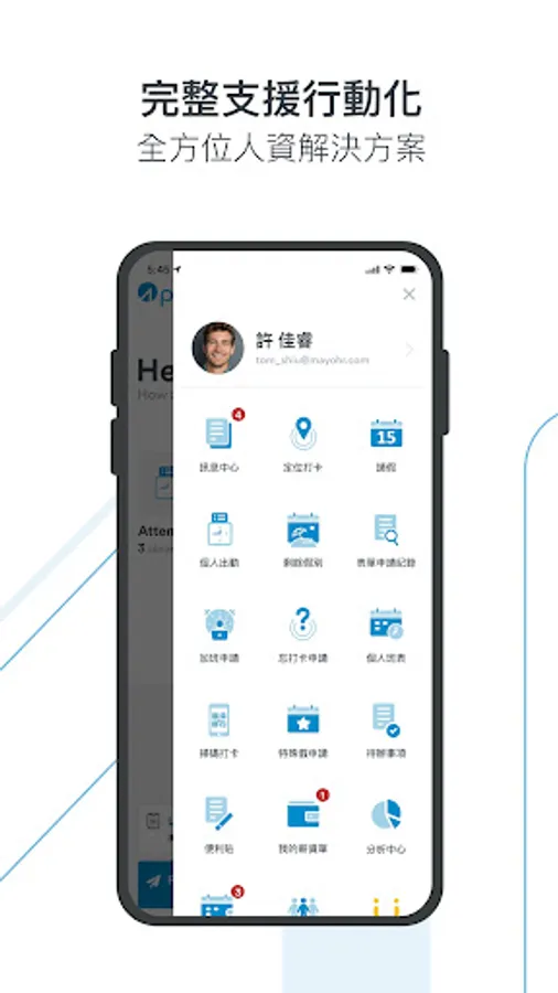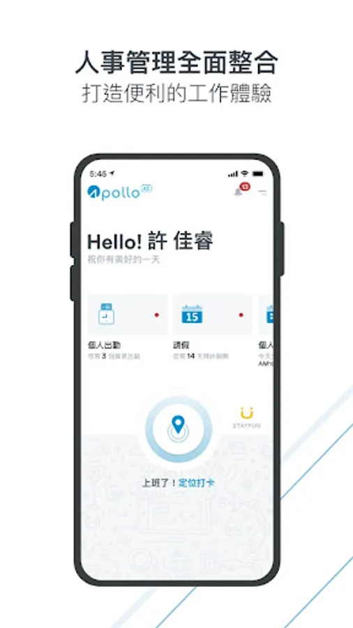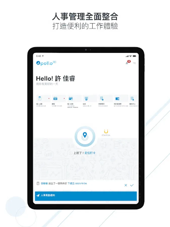 Apollo HR XE is a cloud-based human resource system under MAYO Dingheng Digital Technology. It introduces a new work and life model for corporate employees. You can use the functions of Apollo HR XE on any device to perfectly integrate various needs in work, life and management. , allowing you to enjoy the integration and convenience brought by the cloud and mobile communication generations at the same time. The novel and beautiful intuitive interface, combined with the personalized settings on the home page, meets the needs of each user and takes you on a wonderful personnel journey.