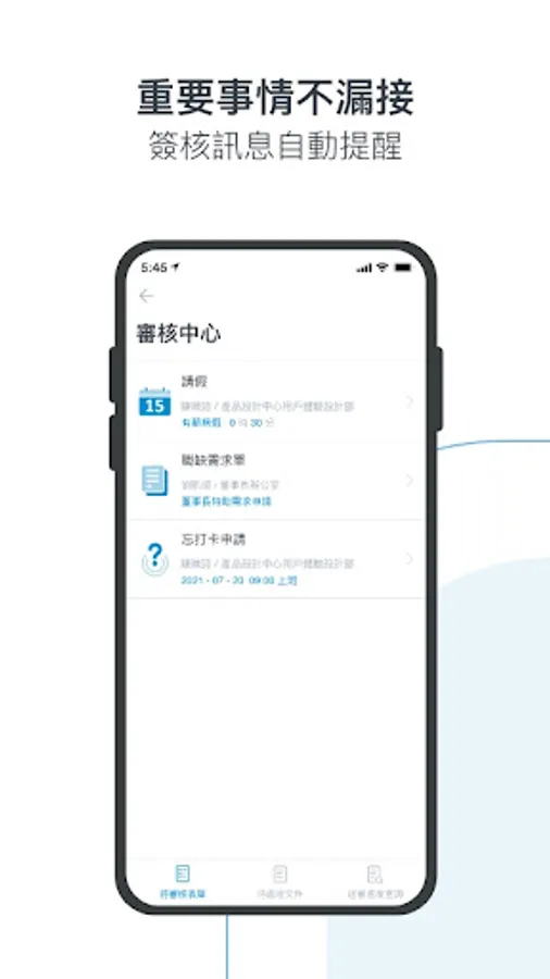 4. Audit center: Instant reminder notification, easy to click on form approval and recruitment progress, and grasp the internal status of the team anytime, anywhere.
