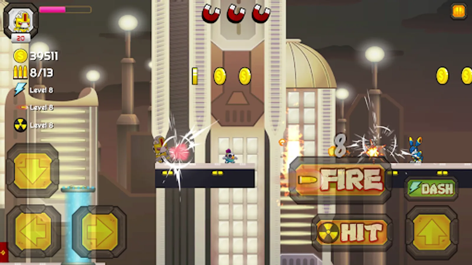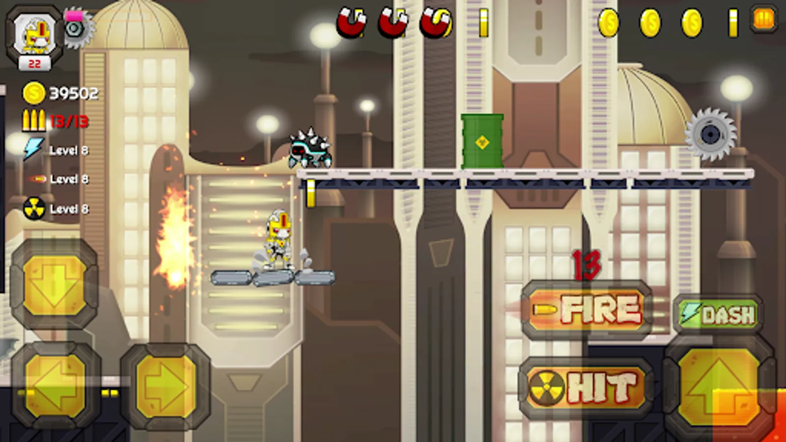Run, jump, climb, attack, fire, dash... use all your robot's unique abilities while collecting coins and power-ups to aid your journey.