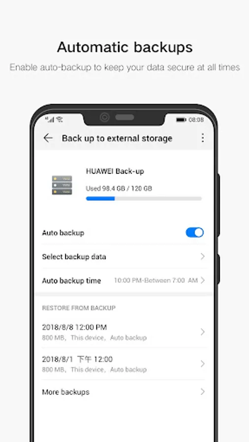 Selected devices can now back up to network-attached storage (NAS) and Huawei Back-up. You can also make automatic backups to NAS, Huawei Back-up, and memory cards now.