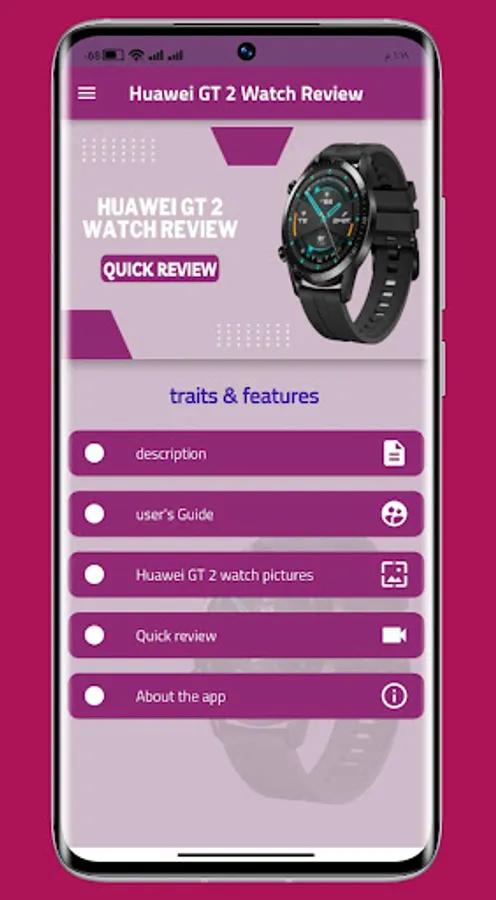 Welcome to the Huawei GT 2 Watch Review Guide application, in which you can view the review and guide for using the GT 2 Watch for all the features, where you can also find the most important features: