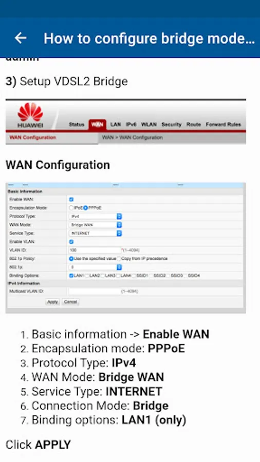 * How to configure Huawei Router (Default ip address is 192.168.l.l Huawei, username and password are "admin".)