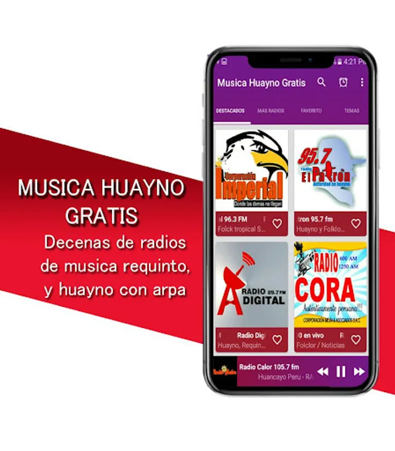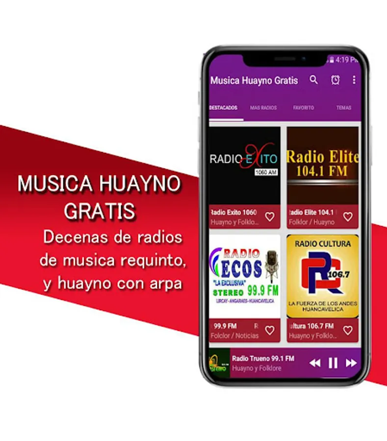 Musica Huayno Gratis, incluye todas las estaciones que transmiten los siguientes géneros musicales, huaynos peruanos gratis, huaynos antiguos, huaynos y cumbias.