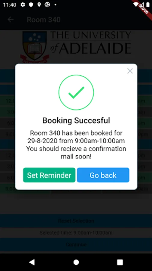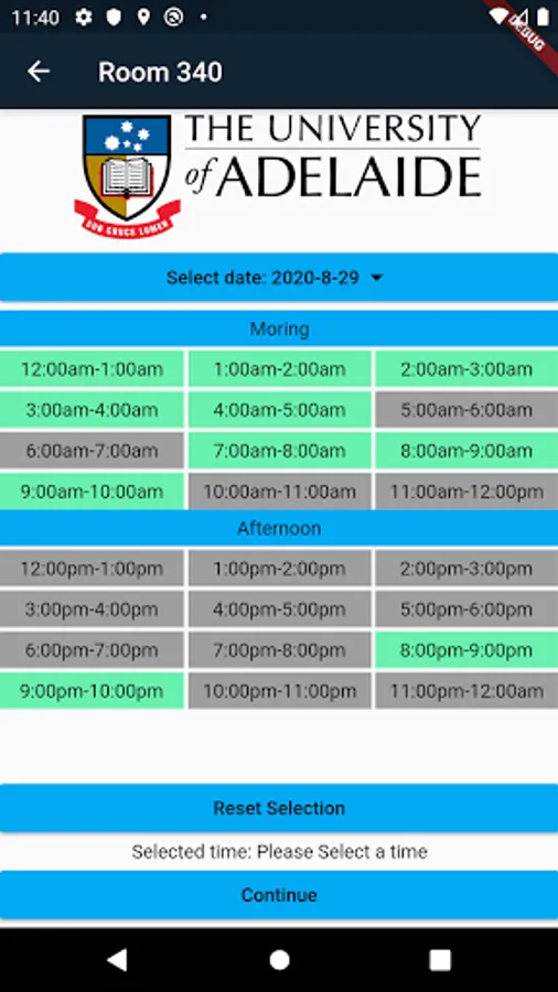 Mobile application to reserve study spaces at the University Of Adelaide North Terrace campus Hub Central and Barr Smith Library.