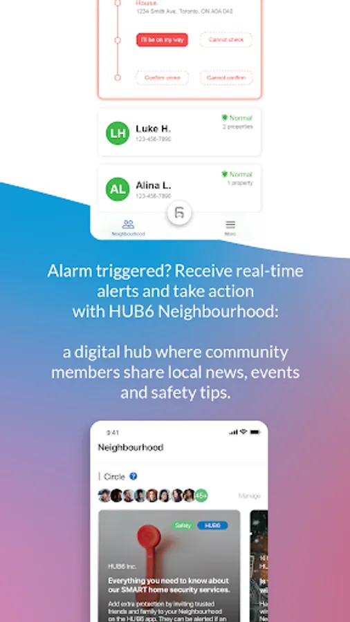- Creating different HUB6 accounts for each family member to control one home security system -simultaneously