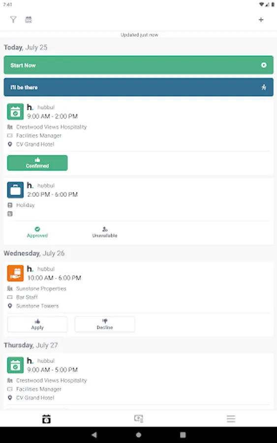 Breaking Free from 9 to 5: Don't be confined by traditional working hours. hubbul empowers you with a self-service app, granting real-time access to manage your schedule, accept shifts, and access pay information at any time, day or night.