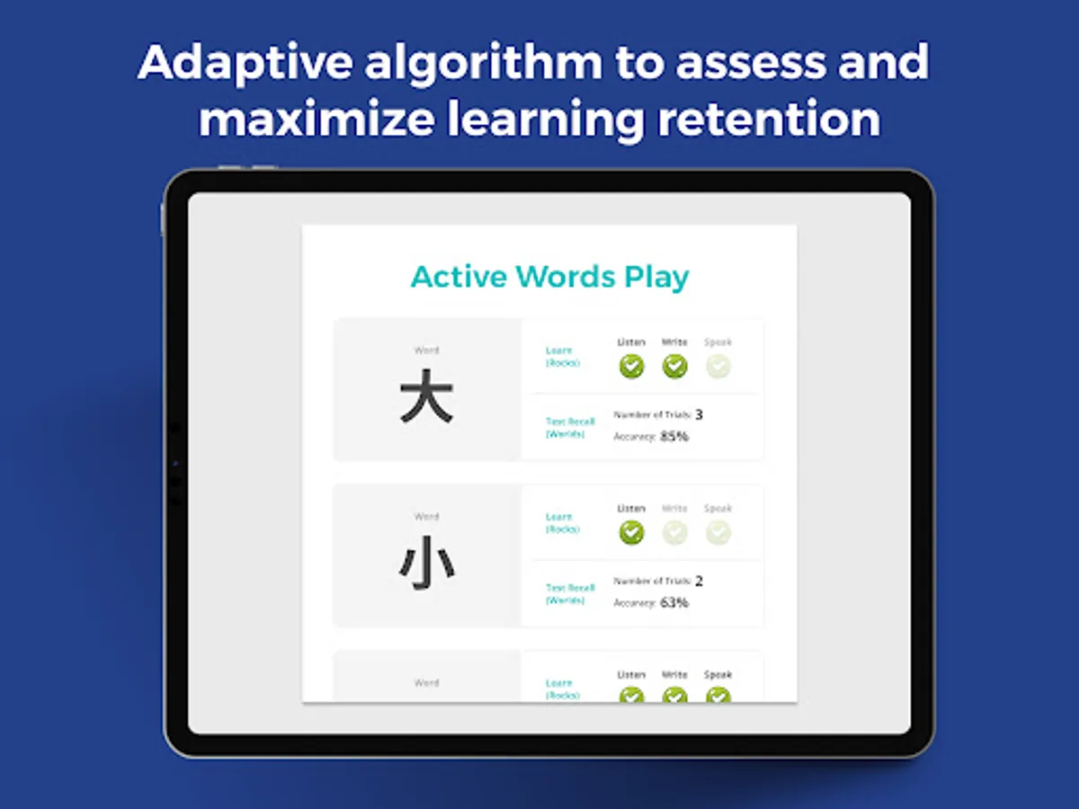 - Free access to the first 40 Chinese words and their accompanied listening, writing, and speaking games