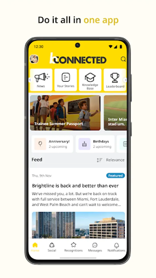 bConnected - Brightline is a free mobile communication and messaging app available for use by registered & active designated Brightline users. bConnected - Brightline helps the company, elevate two-way communications and push relevant and timely information to users.