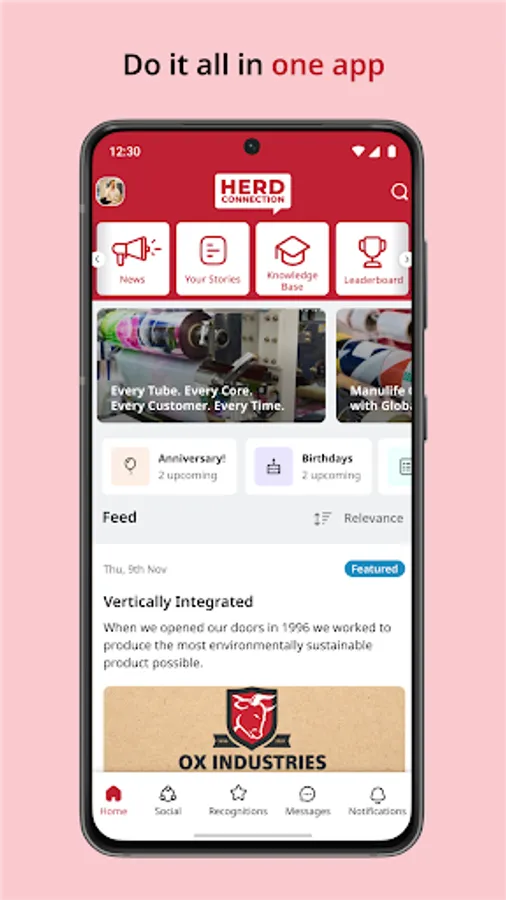 HERD by OX Industries is a free mobile communication and messaging app available for use by registered & active designated OX Industries users. HERD by OX Industries helps the company, elevate two-way communications and push relevant and timely information to users.