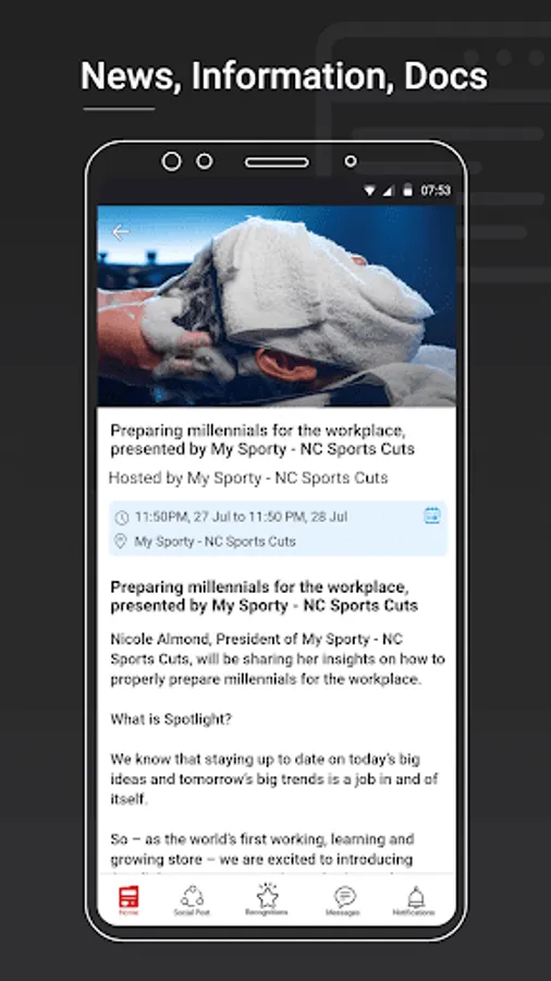 My Sporty is a free mobile communication and messaging app available for use by registered & active designated NC Sports Cuts users. My Sporty helps the company, elevate two-way communications and push relevant and timely information to users.