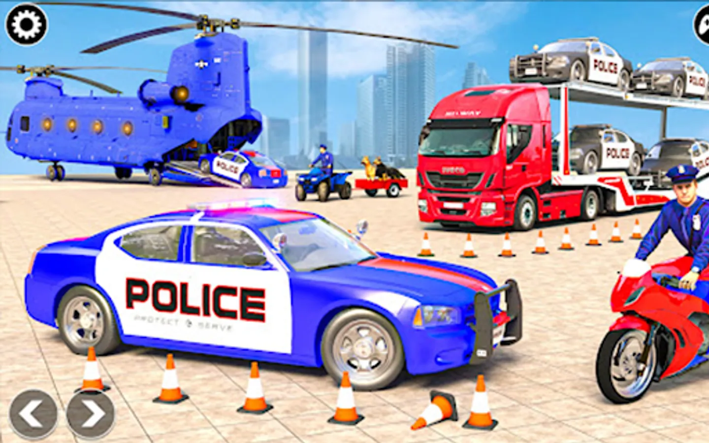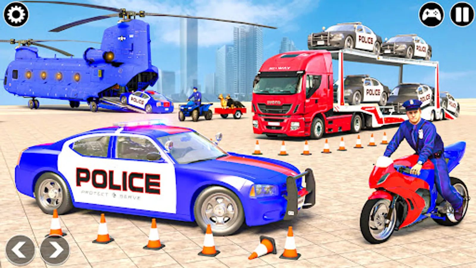 The Truck Simulator among truck games is the best truck transport game 2022. Police car transport trucks amaze you with car parking truck transport driving and limo Car transporter truck games. Transport police cars, police limos,s and sports cars from one destination to another in the heavy truck driving game with Us National Police Car Patrol. Jump into the Police transport truck game 2022 among police truck transport and enjoy the cargo truck driving experience with the taste of cop car transport simulator 2022 with us police car parking game. This cop limo car truck transport games with music give modes of your choice and enjoy police plane transport games and truck games. Load police cars and a police dog on long trailers and transport them to the other destination in this police truck simulator and truck driving game.
