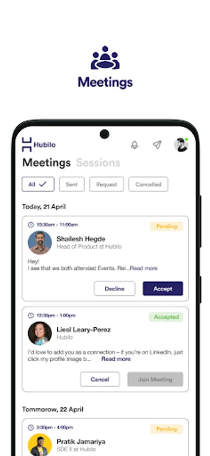 2. Set up meetings with potential attendees (collaborators, mentors, industry experts) by using the chat feature.