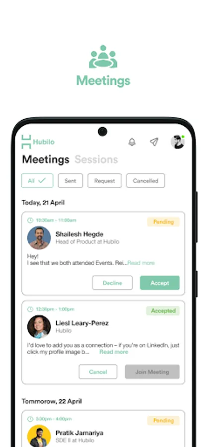 2. Set up meetings with potential attendees (investors, mentors, industry CxOs) by using the chat feature.