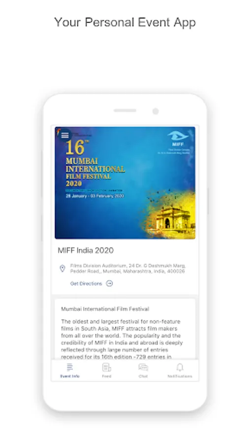 The oldest and largest festival for non-feature films in South Asia. MIFF is organized by Films Division, Ministry of Information & Broadcasting, Government of India. This app will help navigate the festival, festival complex and other venues. The App will have the festival schedule, where to shop, eat and much more.