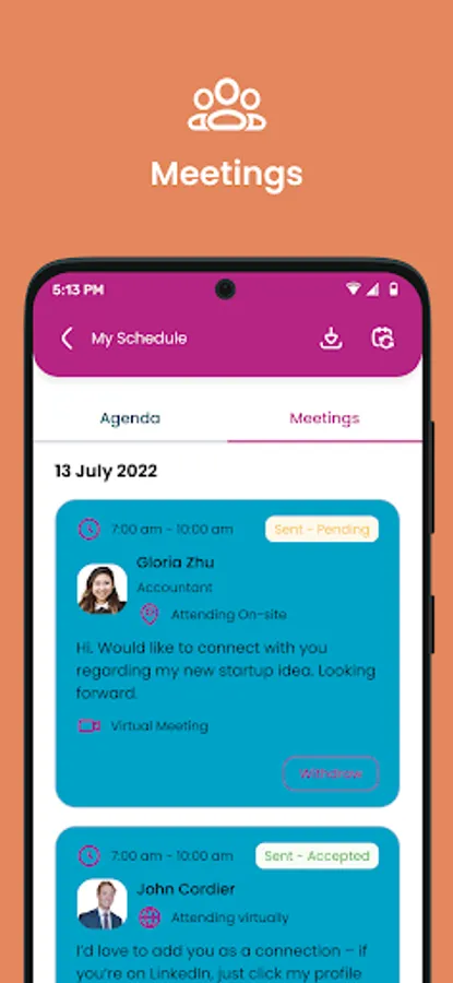 3. Set up meetings with your new connections by using the chat feature (such as CEOs, potential funders, and thought leaders)