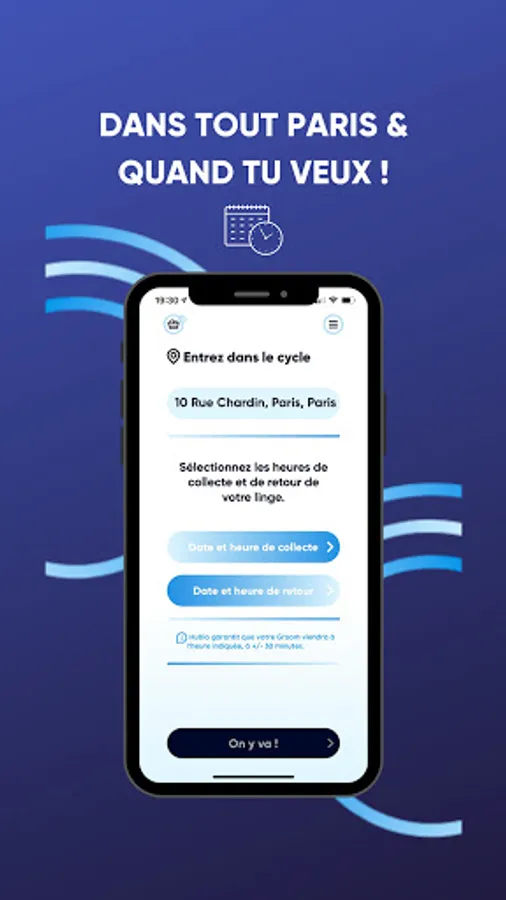 1. Enter your address then choose the date and time of collection and return. Your dedicated Groom (Hublo employee) is immediately alerted and arrives within a minimum of 6 hours
